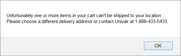 Univair has a $10.00 minimum order. Shipping quotes will not be displayed until you have at least $10.00 worth of products in your cart.